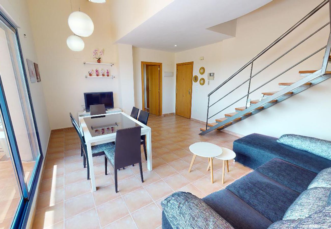 Ático dúplex ubicado en el residencial La Marjal con piscina comunitaria y dos plazas de garaje. Este hermoso ático está completamente equipado y dispone de un dormitorio en la planta baja con baño, y el segundo dormitorio en la planta superior con baño en suite. Cuenta con una amplia cocina con acceso directo a la terraza de 42m2. Se encuentra a tan solo 900 metros de la playa y a 2 kilómetros del centro de Dénia