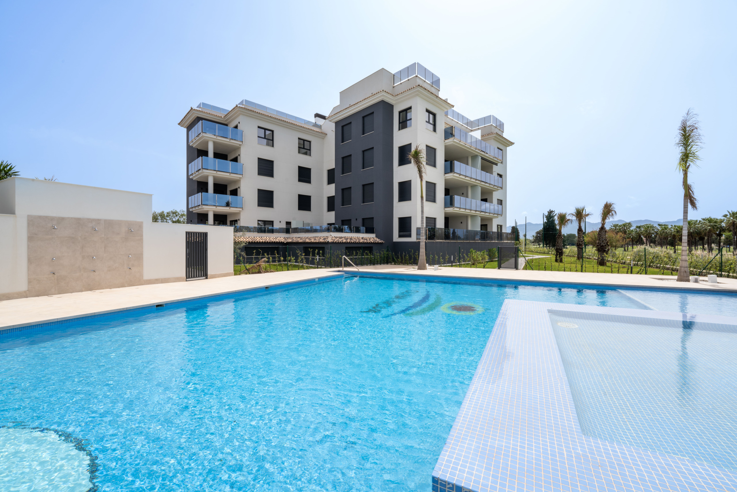 El residencial cuenta con piscina comunitaria, amplias zonas ajardinadas, plazas de parking numeradas reservadas para los clientes en el semi-sótano del edificio.