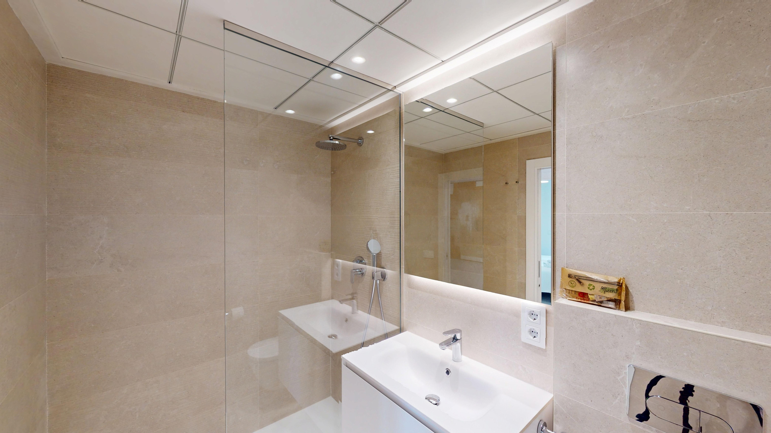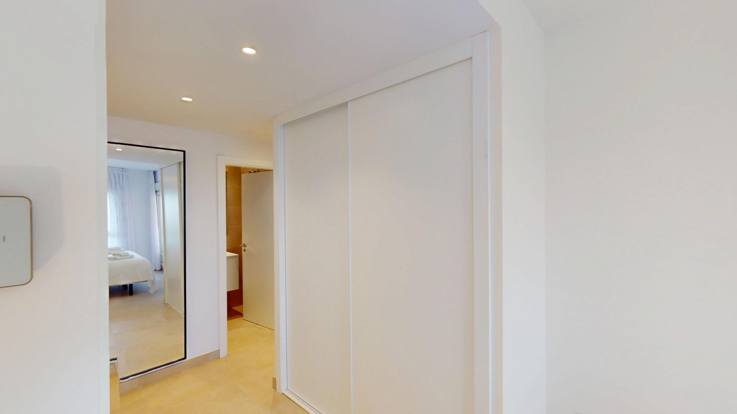 Die Wohnung verfügt über eine praktische Aufteilung mit 3 Schlafzimmern, die mit 5 Betten ausgestattet sind (1 Doppelbett und 4 Einzelbetten). Es gibt 2 vollständige Badezimmer mit Dusche.