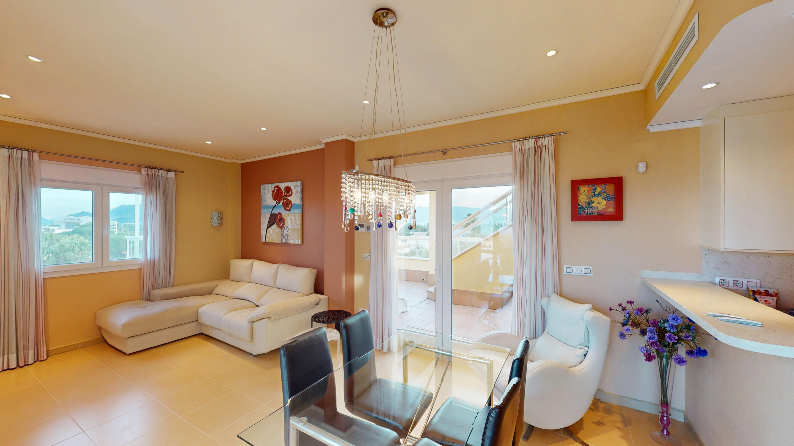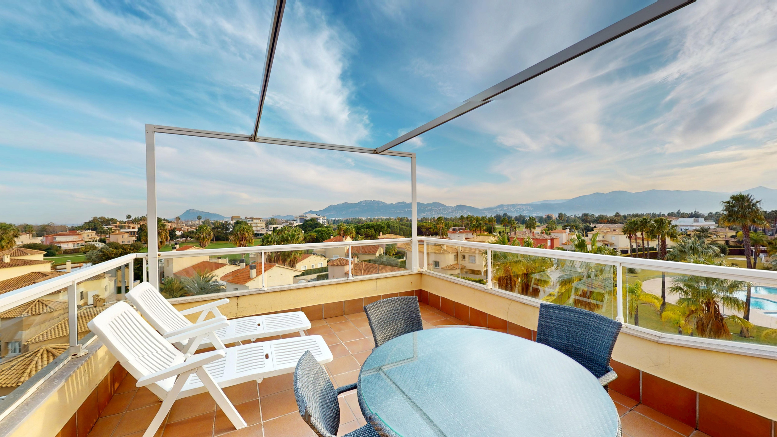 Dachgeschosswohnung mit Meerblick und privatem Pool, die sich in einer privilegierten Wohnlage von Oliva Nova befindet, bietet ein perfektes Erlebnis für Familien und Paare, die einen entspannenden Urlaub am Meer suchen.