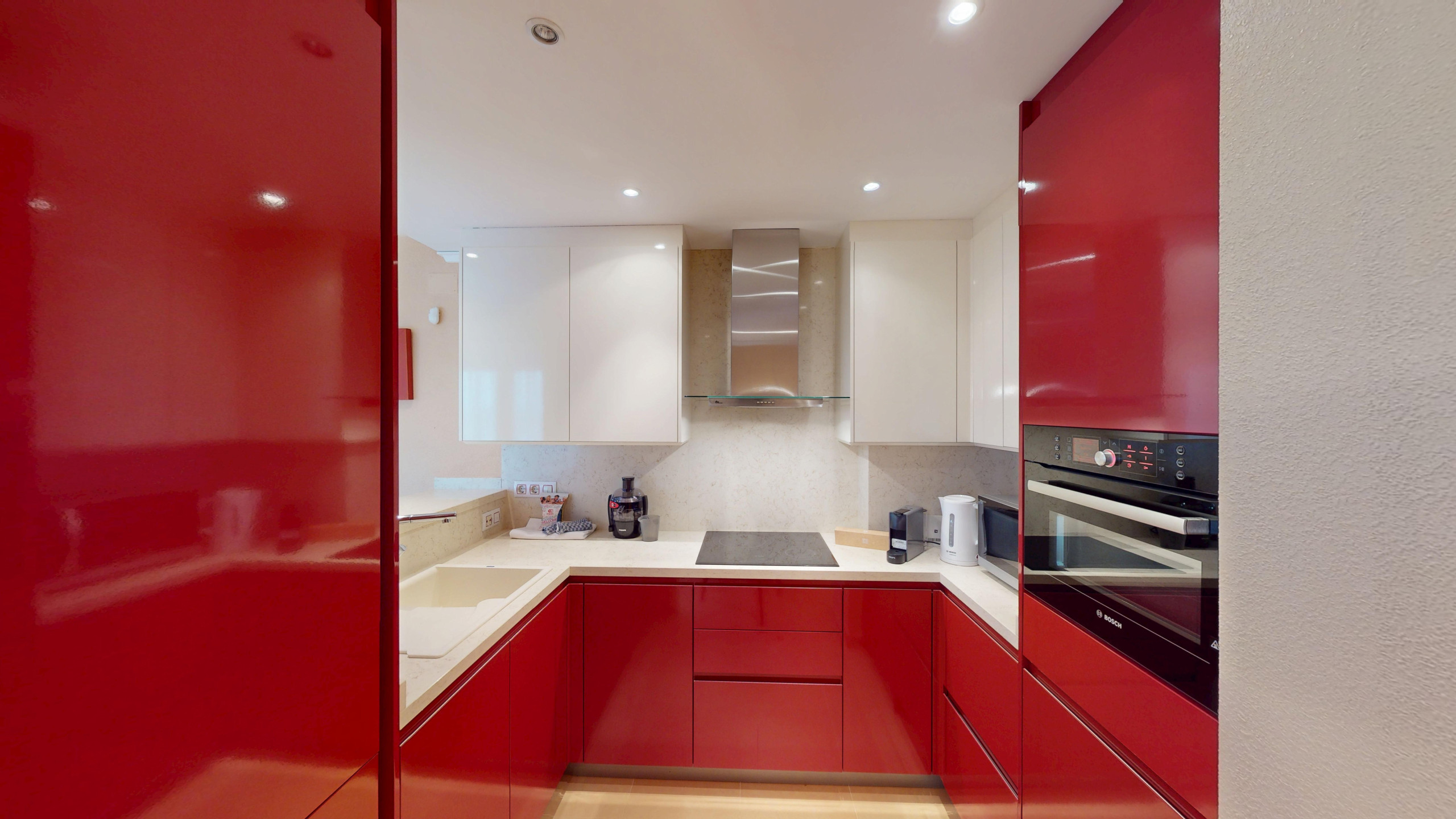 The American kitchen is fully equipped with state-of-the-art appliances, including a washing machine, dishwasher, oven, microwave, coffee maker, toaster and a complete set of kitchenware. The living room is equipped with television and WiFi connection.