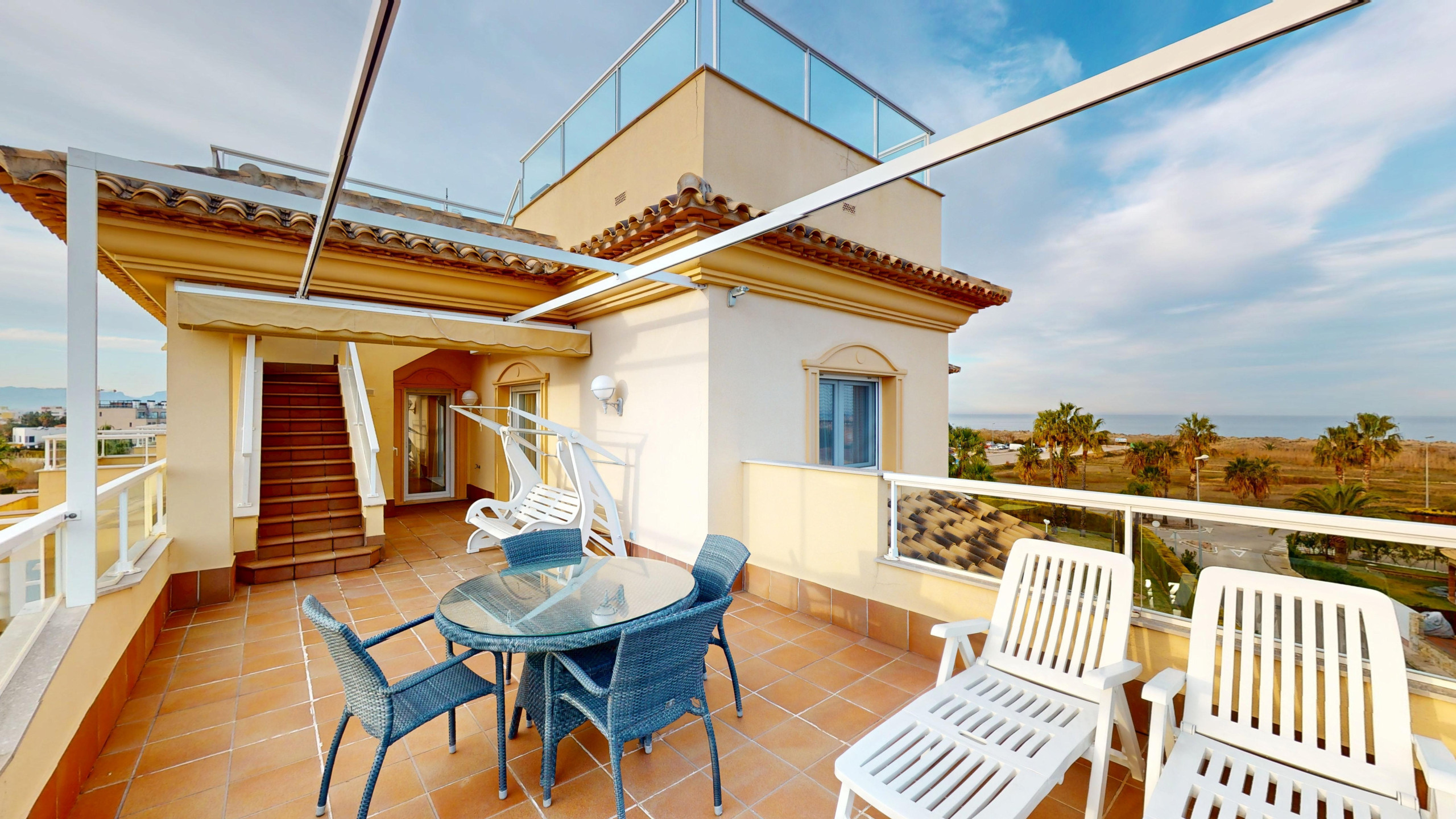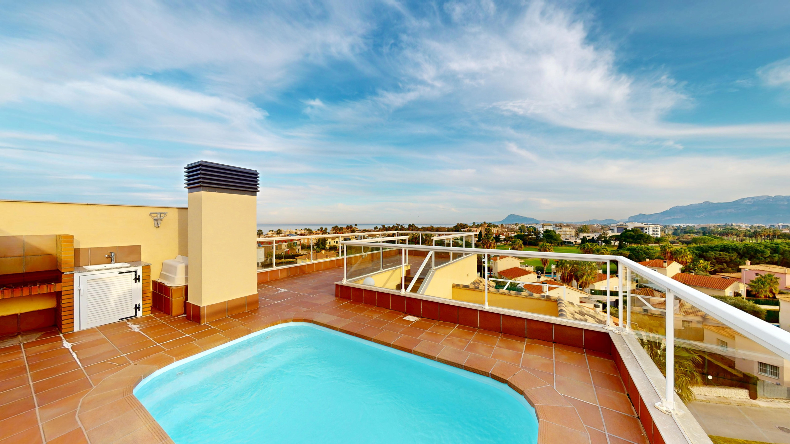 Penthouse with sea views and private pool located in a privileged residential area of Oliva Nova, offers a perfect experience for families and couples seeking relaxing holidays by the sea.