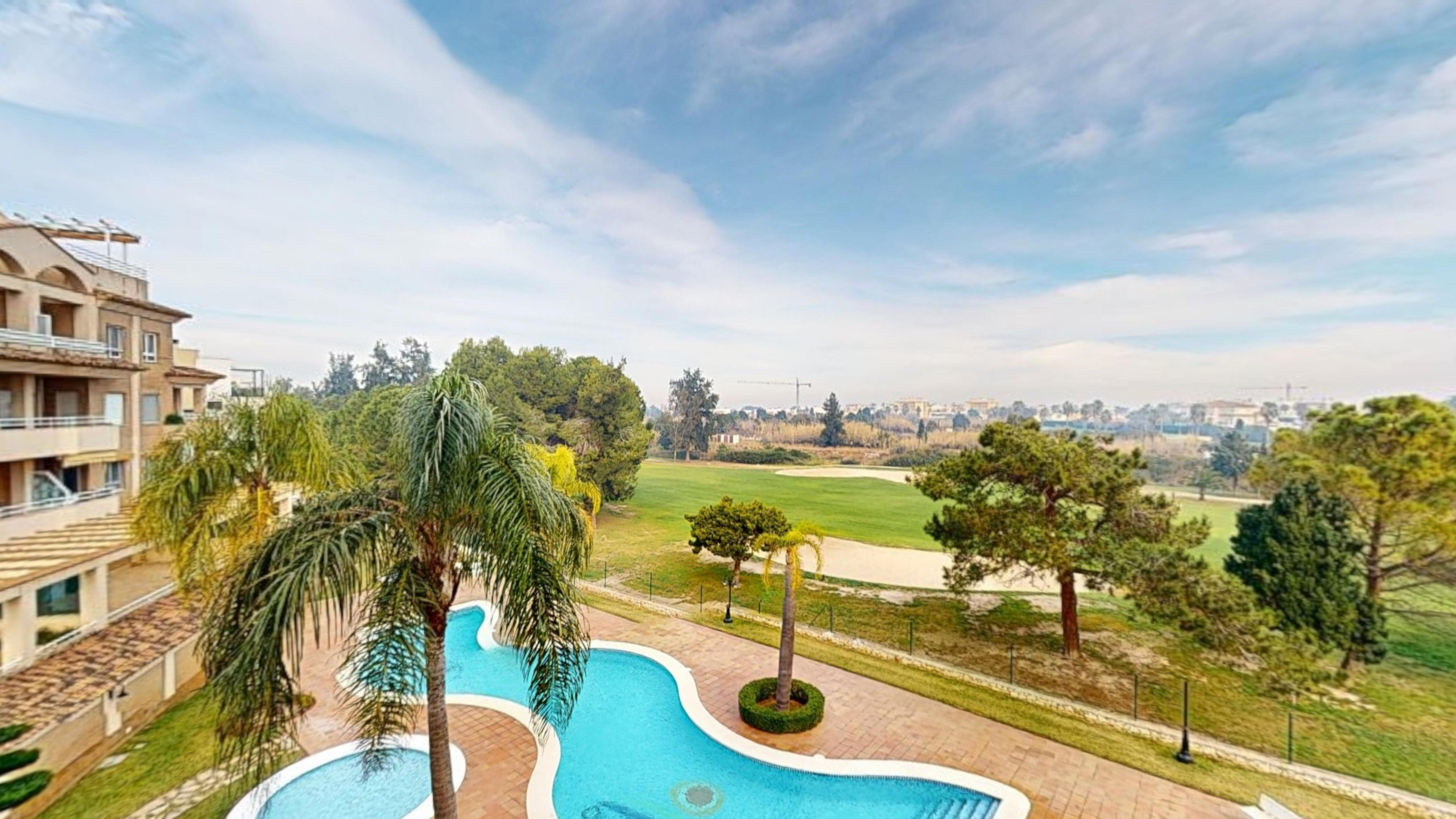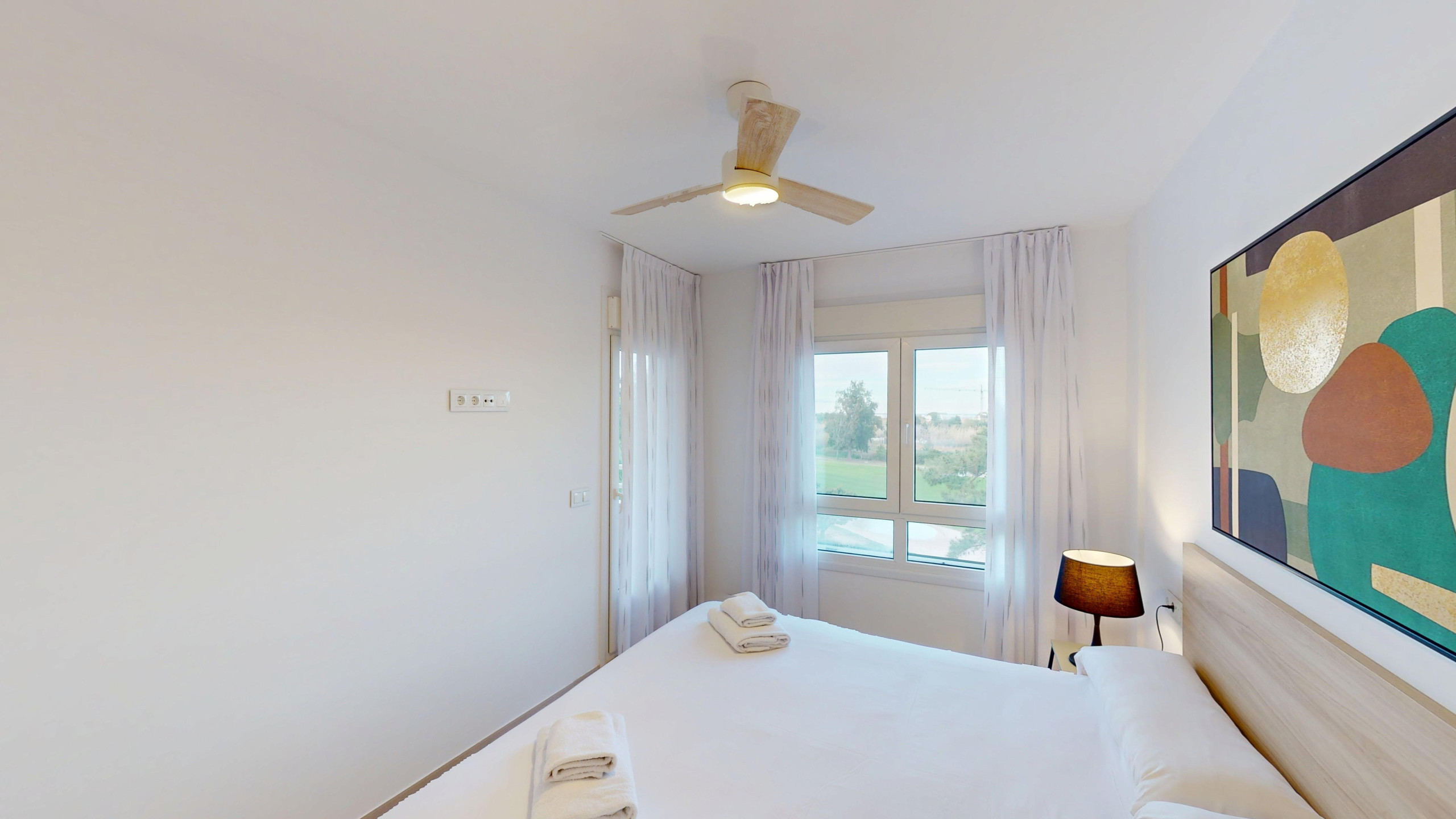 Parmi ses commodités, on peut citer la connexion WiFi, la télévision, le fer à repasser et l'accès à une piscine partagée. Le logement comprend un parking privé extérieur et offre une vue sur le terrain de golf, la piscine et les jardins.