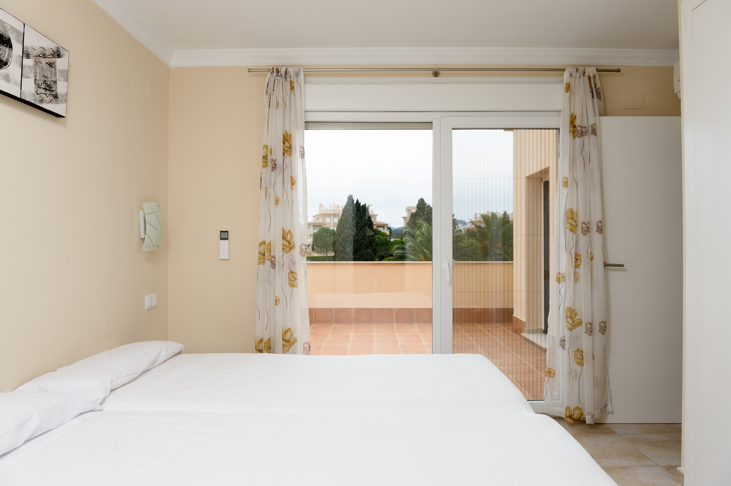Creo que vendria bien poner un toldo encima de la puerta que da al salón o por lo menos una sombrilla. A modo sugerencia para los que tenemos mascotas, la parte frontal del jardin que da al campo de golf no está vallada como los laterales, y hay bastantes espacios entre los pinos por los que pueden pasar los perritos.